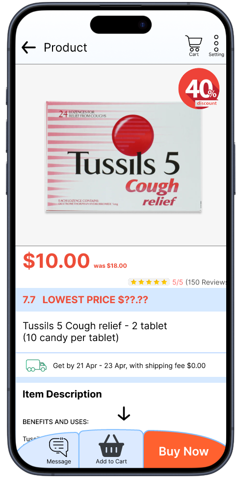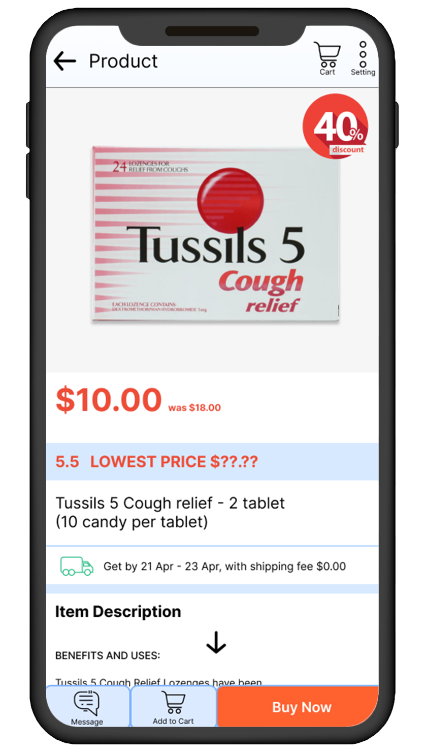 Doctor has own prescription in different location and I only can buy that area which me problem and waste travel time. With this app, is easier to purchase online for myself and my parents with delivery service.